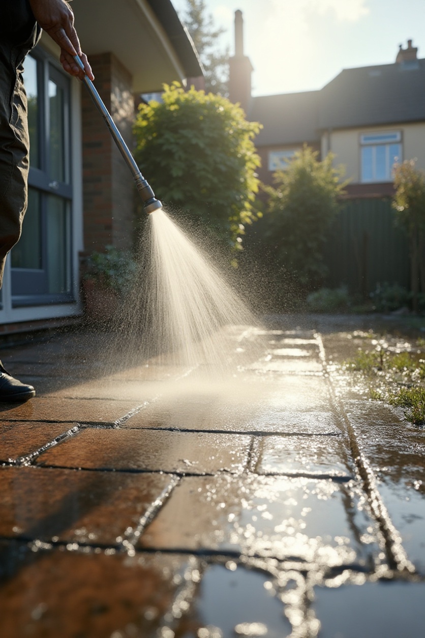Jointing between paving slabs is another important detail. Over time, pressure washing can remove loose jointing material, especially if it has already weakened. After cleaning, some patios or paths may benefit from re-sanding or re-pointing to maintain stability.